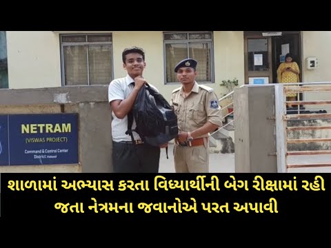 /Valsad/Video/વલસાડ ની વલ્લભ આશ્રમ શાળામાં અભ્યાસ કરતા વિધ્યાર્થી ની બેગ રીક્ષામાં રહી જતા નેત્રમ ના જવાનો એ કેમેરેનાની મદદ થી બેગ શોધી વિધ્યાર્થી ને પરત કરી.