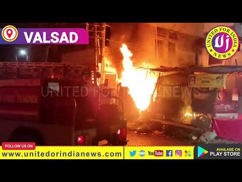 વલસાડના ટાવર રોડ ઉપર ગાંધી લાઇબ્રેરીની સામે એક જૂશની લારીમાં વહેલી સવારે અચાનક આગ લાગી | જુઓ વિડિઓ